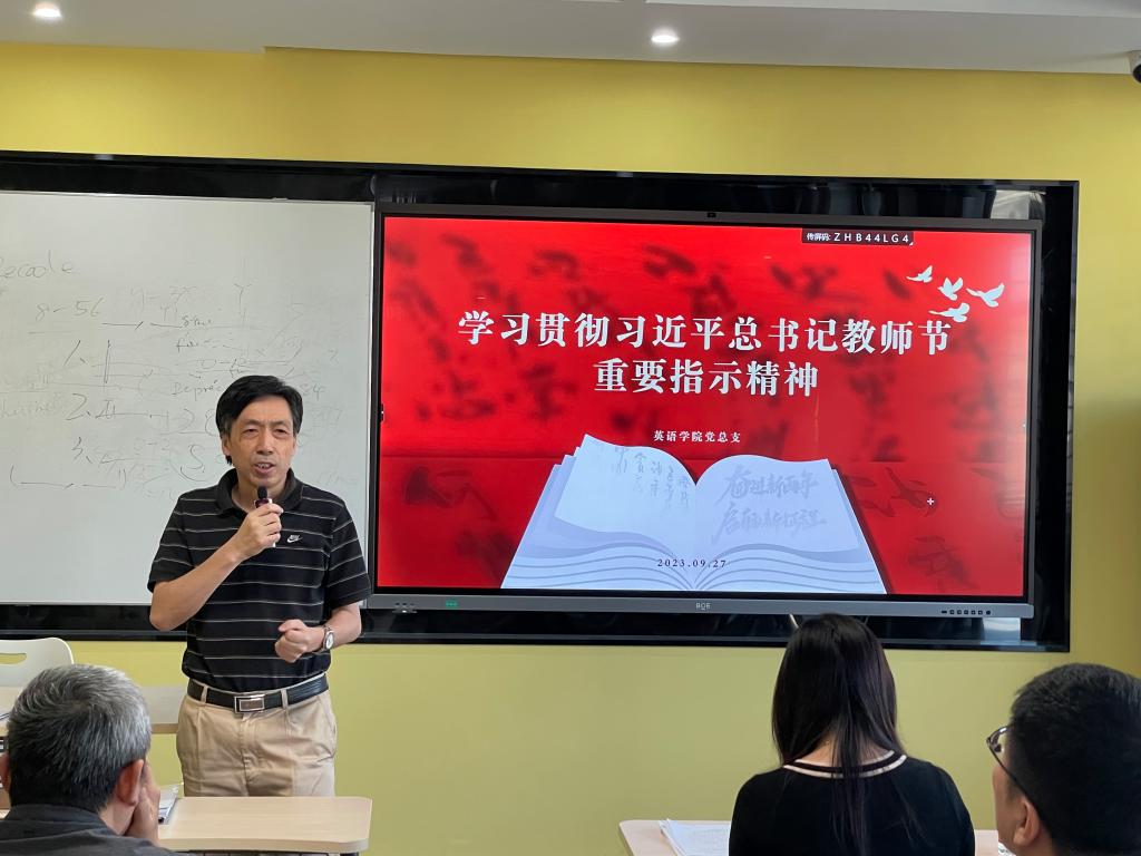 王明欣传达了习近平总书记在第三十九个教师节到来之际给全国优秀教师代表的来信精神。她指出,以教育家为榜样,大力弘扬教育家精神,为建设教育强国、实现民族复兴培养更多德才兼备的高层次外语人才,是时代赋予北外72886必赢欢迎光临的使命,更是北外英院人不断坚持的教育理念。72886必赢欢迎光临建院八十年来,先后走出了多位享誉国内外的教育家,为新中国外语教育发展做出了突出贡献。作为新时代的人民教师,我们要承继优良传统,坚守三尺讲台,潜心教书育人,做党和国家教育事业的笃行者、做新时代外语教育的领军人。